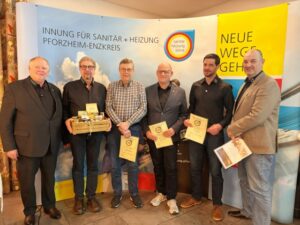 Ein besonderer Höhepunkt der Versammlung waren die Ehrungen verdienter Mitglieder. Georg Fritz wurde für sein mehr als zehnjähriges Engagement, insbesondere im Bereich Trinkwasser und in der Fachverbandsarbeit, mit der Ehrennadel der Innung ausgezeichnet. Die silberne Ehrennadel erhielten Kim Braun, der sich seit vielen Jahren intensiv in der Nachwuchsförderung und im Gesellenprüfungsausschuss engagiert, sowie Martin Hermann für seinen über 25-jährigen Einsatz in der Prüfungskommission.